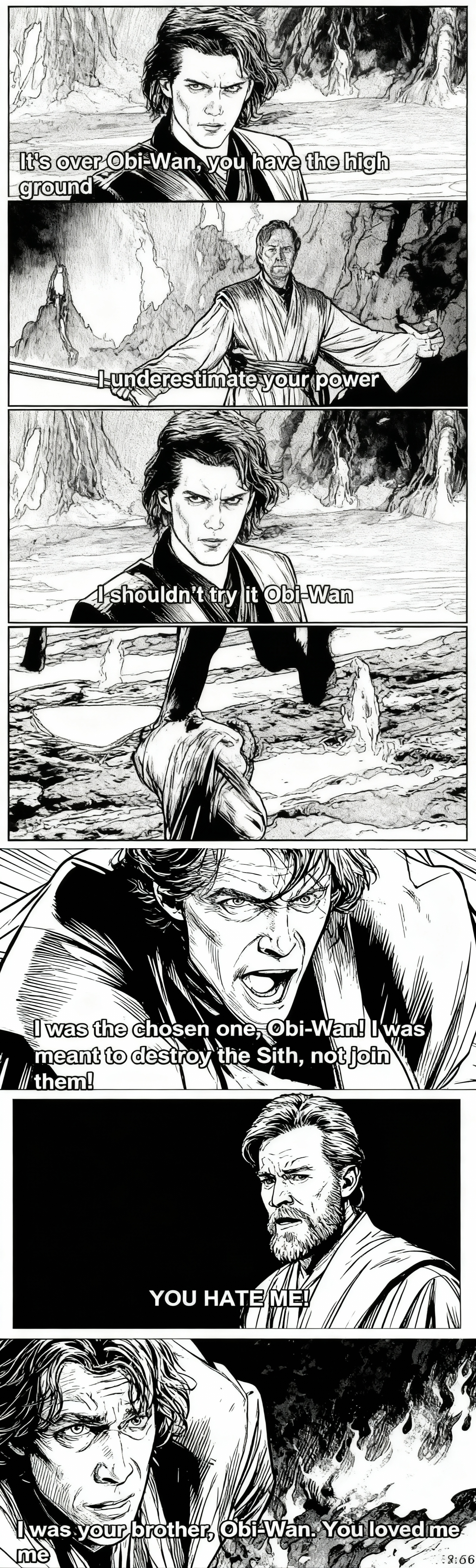 But, also, it seems clear that a basic moral template is insufficient. We are all subjective judges, and we are all incomplete, and the models we create will be, too. And because whatever moral architecture we might articulate may be lacking, itself unjust, despite our best efforts, we need something else to keep us connected, related, zig-zagging toward the top of the mountain: a healthy practice of mutuality. Also this week, the following meme showed up in my feed. It’s a classic scene, with the dialogue reversed. (I’ve kind of awkwardly dropped into the post here — translated to line art by OpenArt.)
