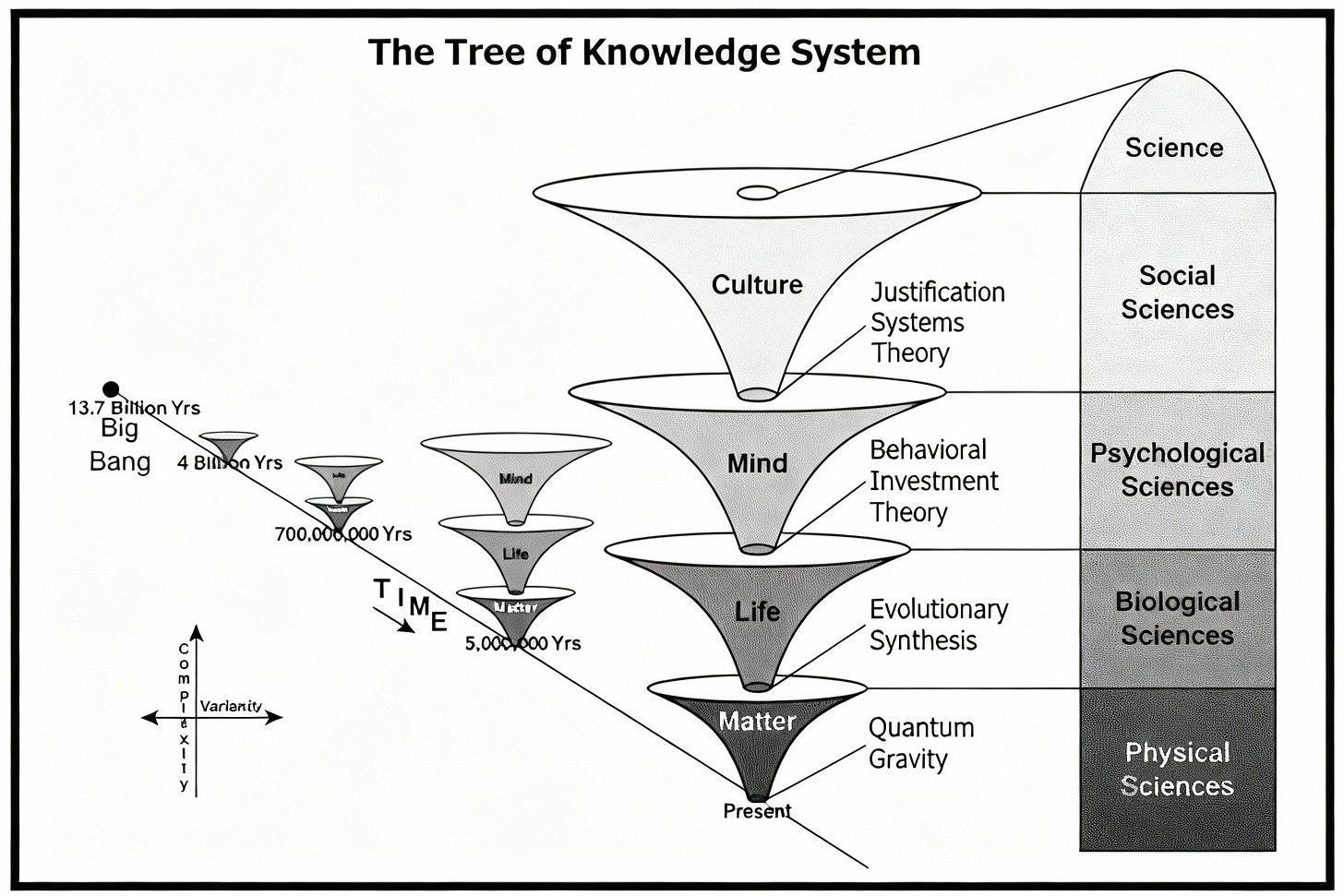 This tendency is nicely summarized by the Gregg Henriques’s “Tree of Knowledge System,” a cornerstone of his popular Unified Theory of Knowledge (UTOK). Matter, governed by the dynamics of physics, produces the emergent dynamism of life. Life produces the emergent dynamism of mind. Mind produces the emergent dynamism of culture — including (philosophy and) science — as illustrated below: